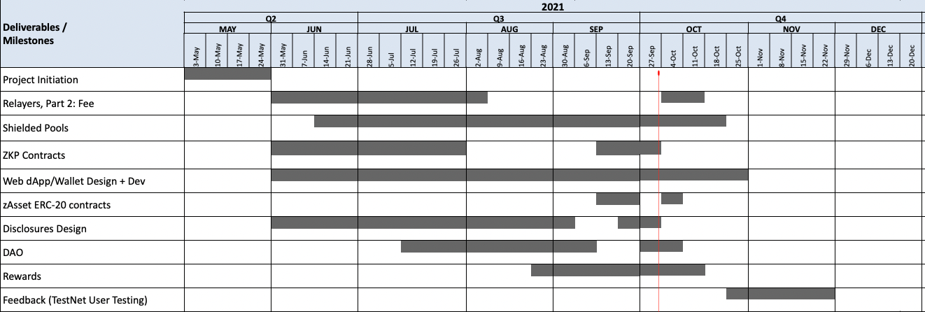 As you probably already know through the release of our Roadmap and MVP articles, our focus was placed on building the mission-critical zAssets minting & burning component, zAssets pools, Privacy relayers, the Privacy Staking module, the Token, allocation and vesting contracts of our ERC-20 $ZKP Token and its bridging to Polygon, where we will build our first release, as well as the beginning of logic for game-changing, voluntary and selective disclosure of transactions (not available on V1).